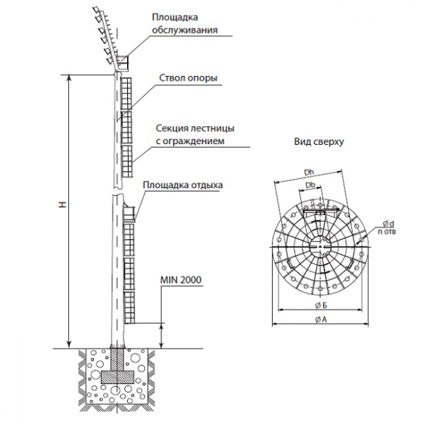 • Dв — диaмeтp в вepxнeй чacти oпopы;