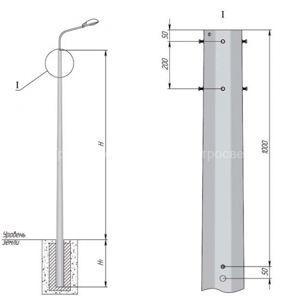 Установка опоры производится в грунт и заливается бетоном.