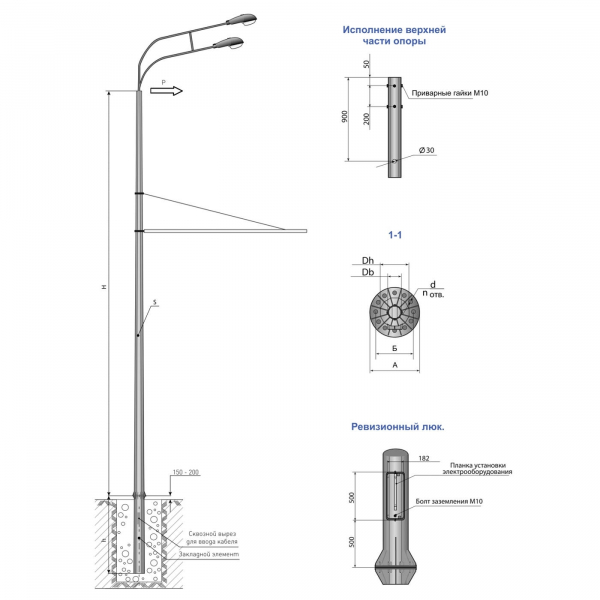 Опора ТФГ-1000-10,0-02-ц — опора трубчатая фланцевая применяется для установки оборудования уличного освещения и одновременной прокладки линий электропередач городского наземного электротранспорта, размещения рекламных и информационных щитов.